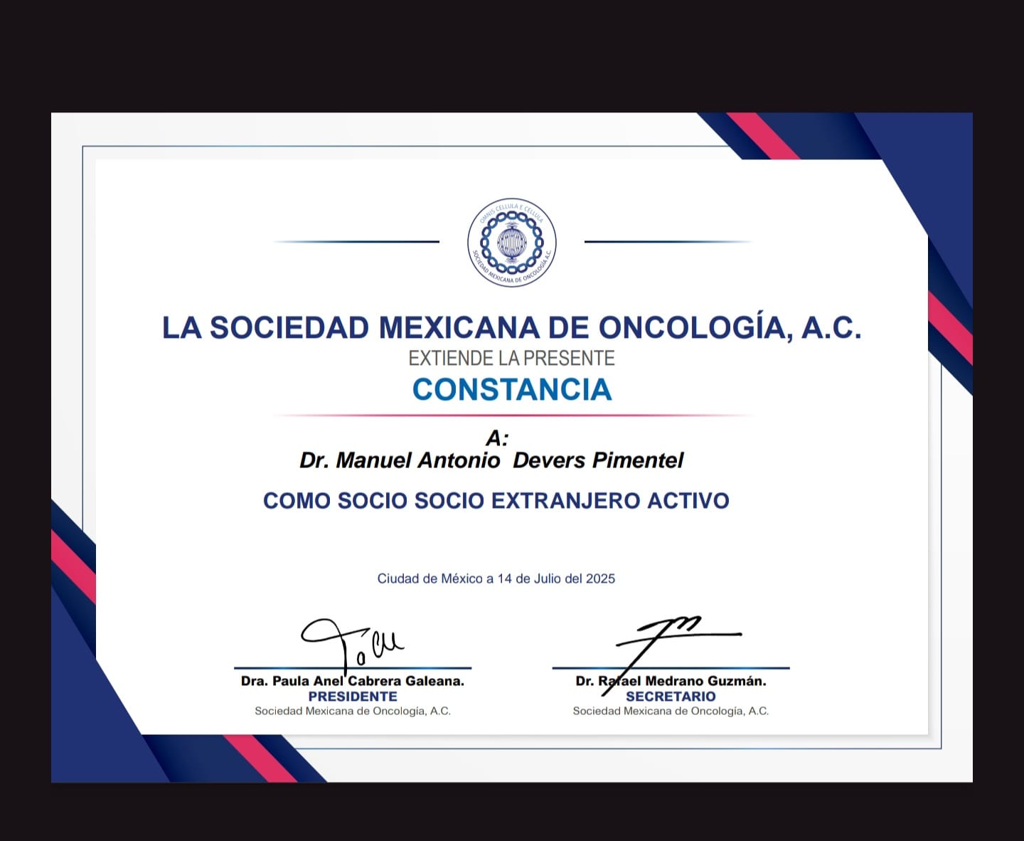 Representante Zona Norte Sociedad Dominicana de Cirugía Oncológica.